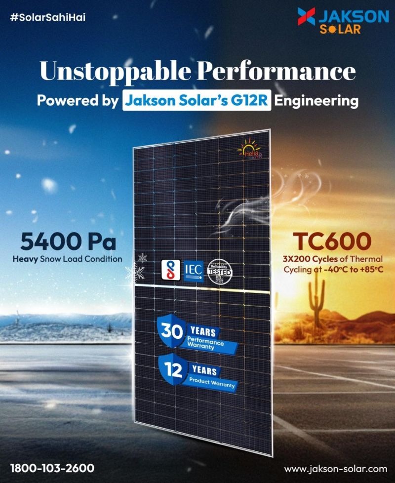 Stands for unmatched strength, advanced technology, and dependable performance. Jakson Solar’s high-efficiency PV modules are engineered to deliver superior power output, exceptional reliability, and long-term durability across diverse Indian climates. Built to withstand heat, rain, winter, and extreme conditions, they ensure consistent energy generation and a stronger ROI. Powering progress with innovation, resilience, and trust-because the future deserves solar that leads from the front