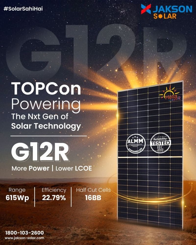Powering the next generation of solar technology, Jakson Solar’s G12R Module represents a leap forward in Performance, Reliability, and Innovation. Delivering up to 615 Wp power, the G12R stands at the forefront of advanced solar engineering. ALMM-empanelled, IEC-certified, and rigorously reliability-tested, it ensures long-lasting performance even in demanding environments. Designed for a cleaner, smarter, and more sustainable tomorrow, the G12R is redefining the future of solar energy.