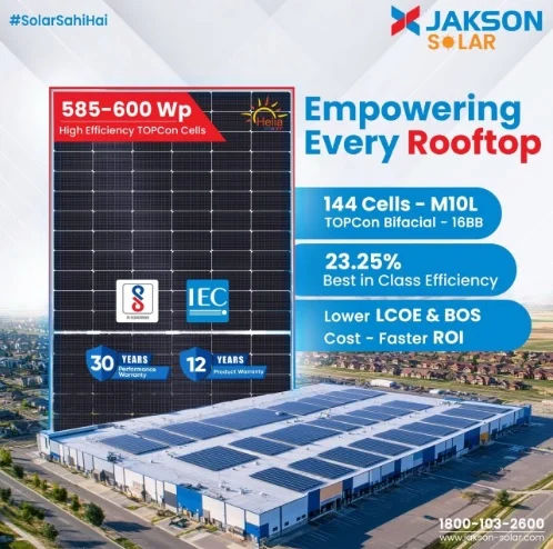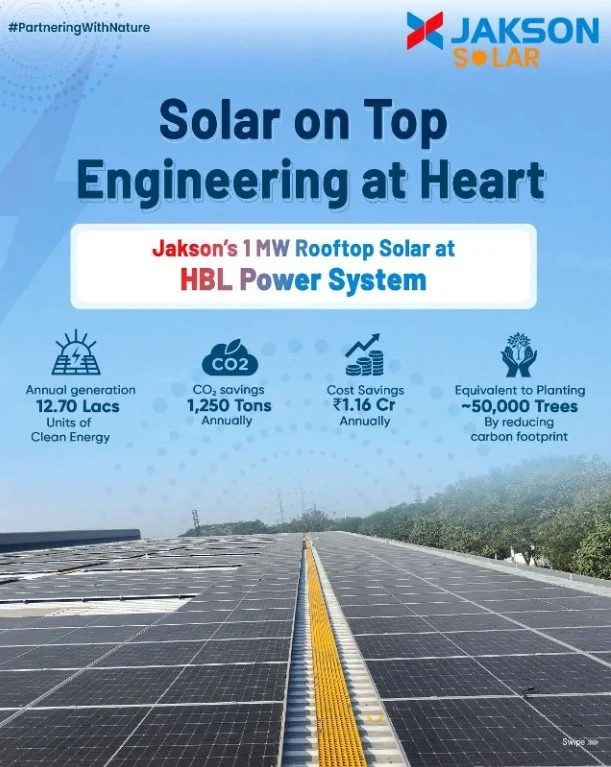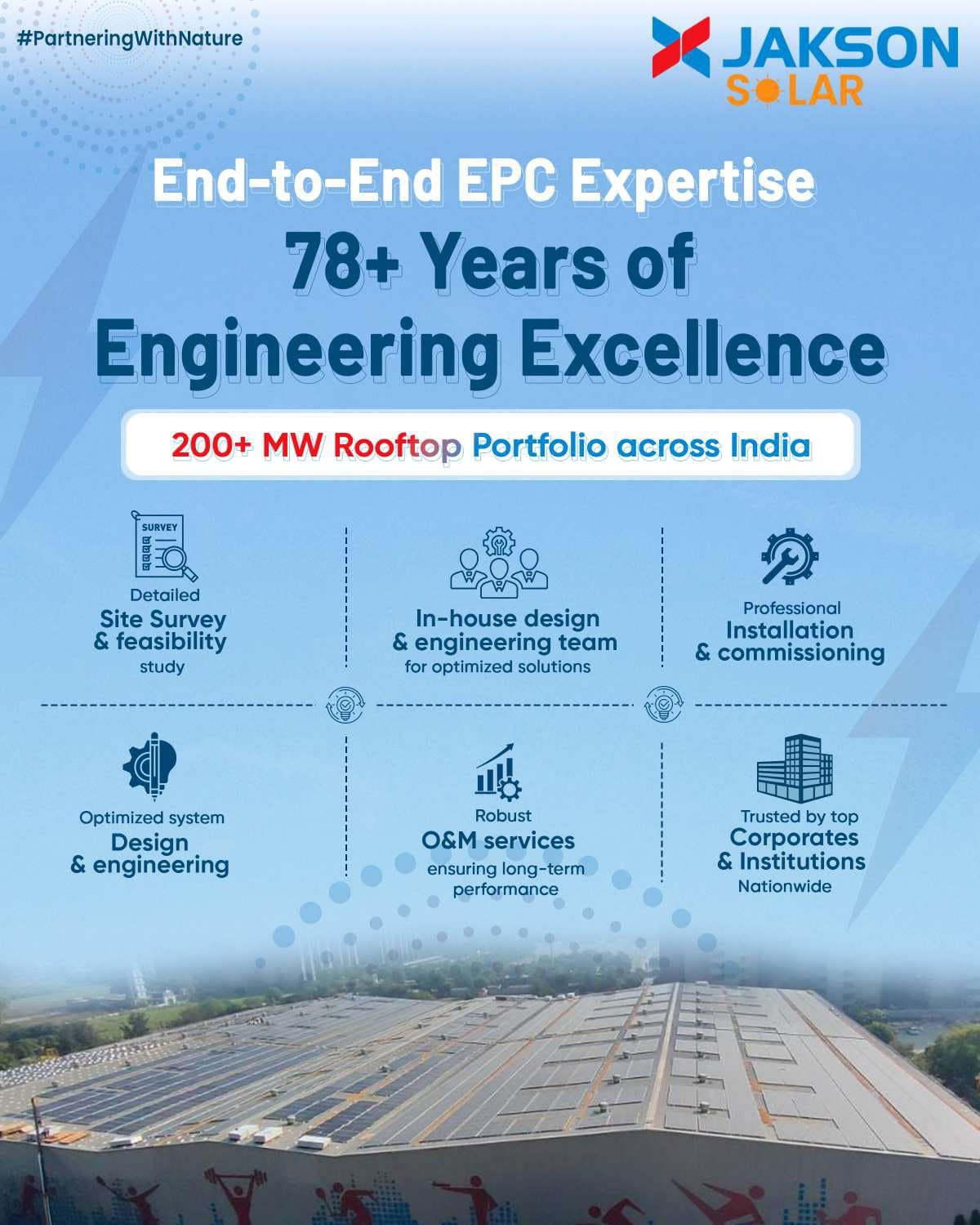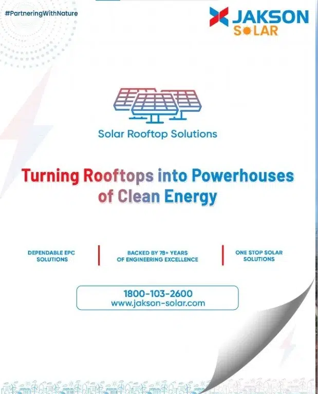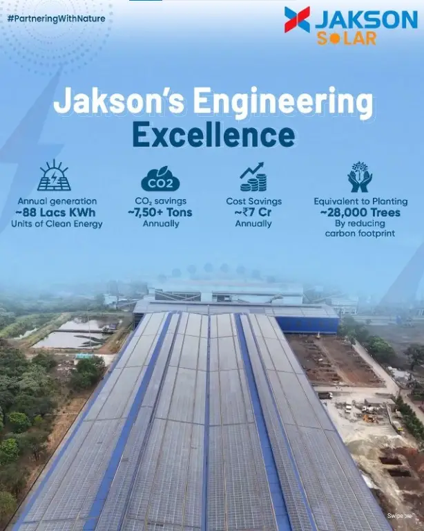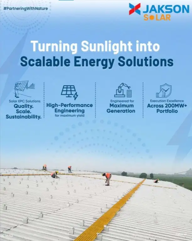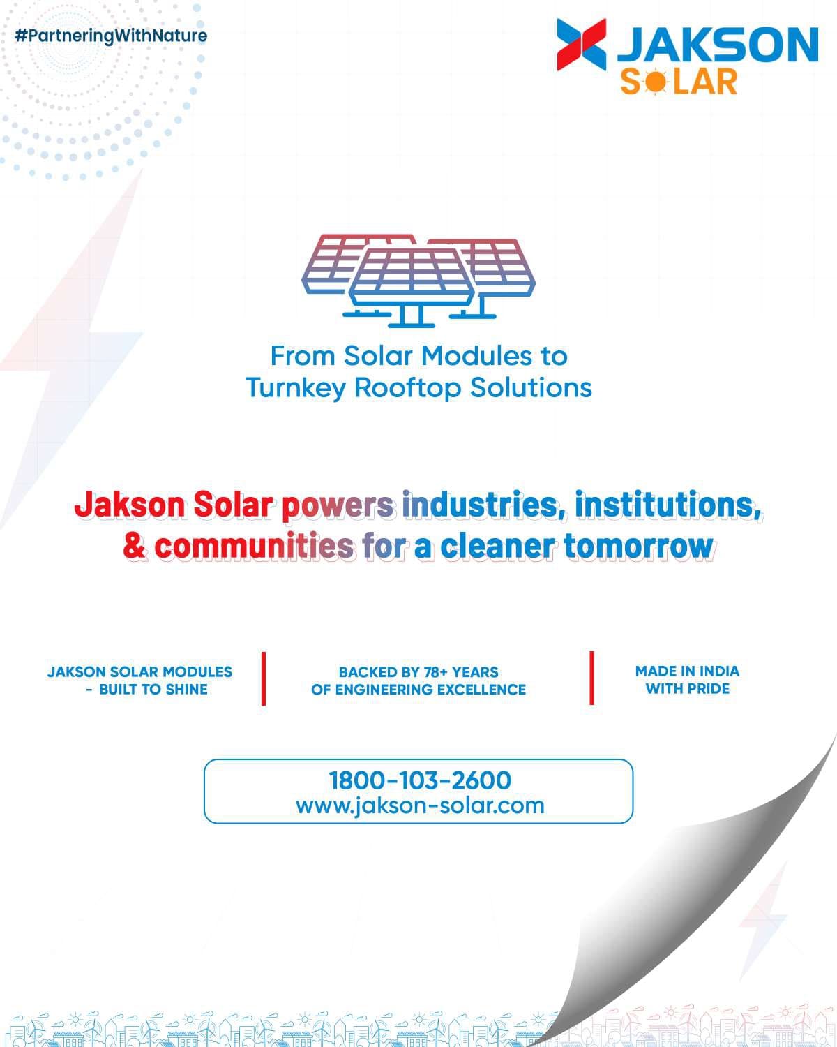 JAIDAYAL GROUP OF COMPANIES is turning its rooftop into a beacon of sustainability with Jakson’s 3 MW Solar Rooftop. This transition to green energy reflects a commitment to a cleaner, brighter future while harnessing cutting-edge solar technology. Backed by reliable, scalable, and sustainable Solar EPC solutions, engineering excellence for maximum yield, and a 200MW+ proven portfolio, Jakson is not just generating power-it’s powering progress from sunlight to specialized solutions.