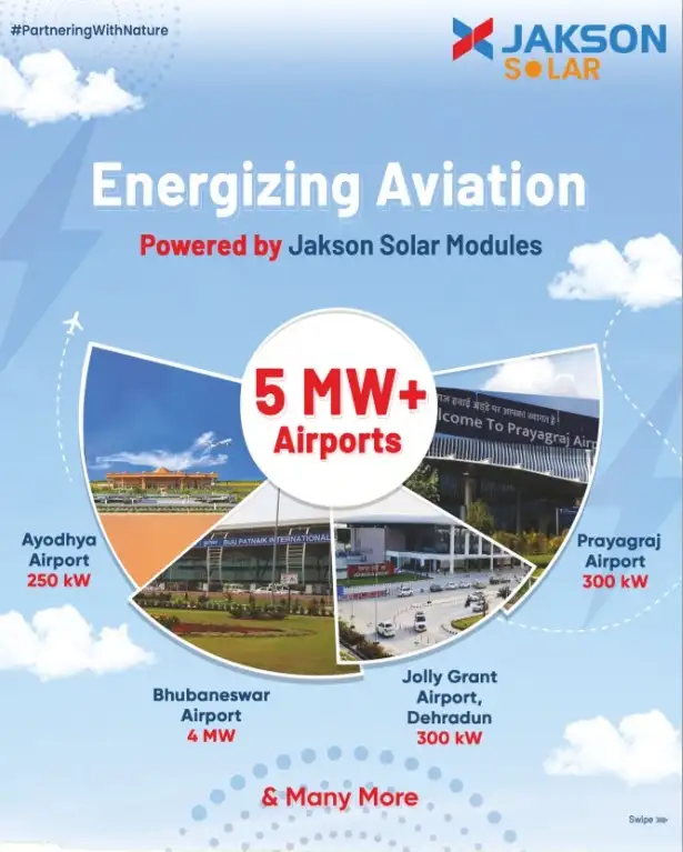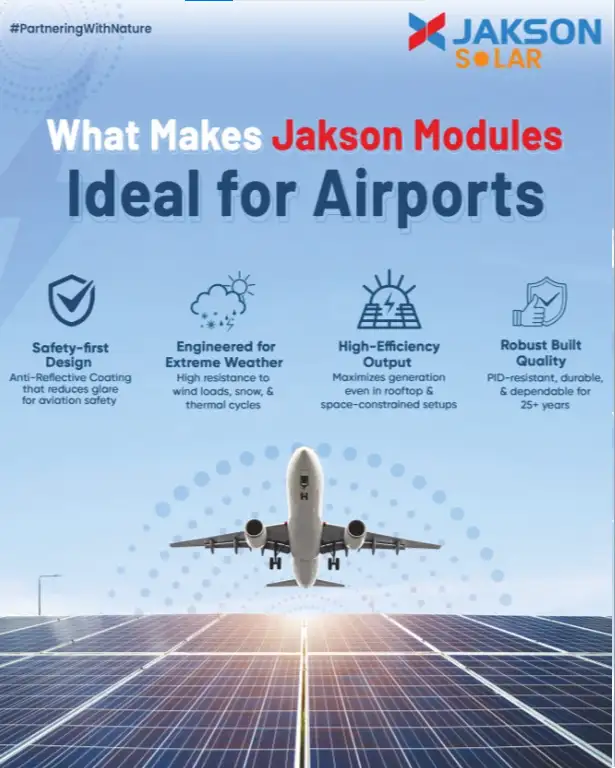 From bustling terminals to high-security airfields, Jakson Solar modules are enabling airports across India to transition to clean, reliable energy with uncompromising safety and performance.