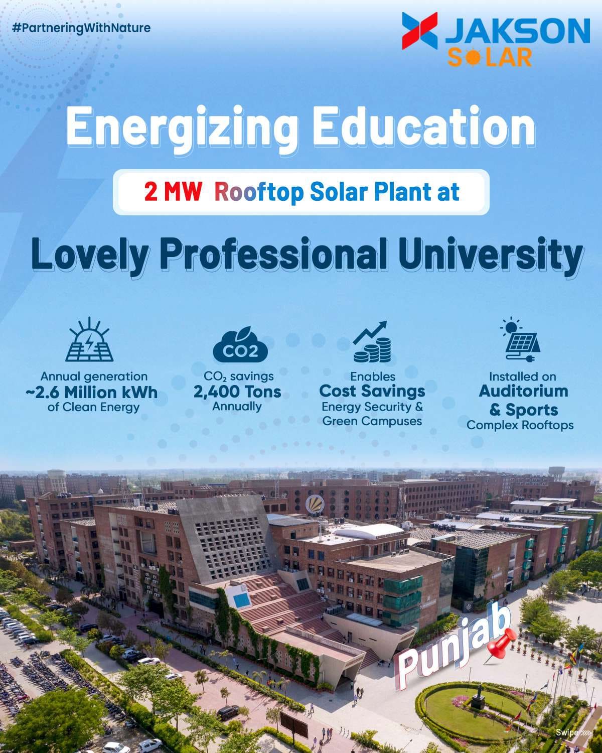 Our latest installation at Lovely Professional University (LPU) Punjab, is a testament to this promise, combining the strength of Jakson Helia Modules with our proven EPC expertise to create a future-ready campus powered by the sun.