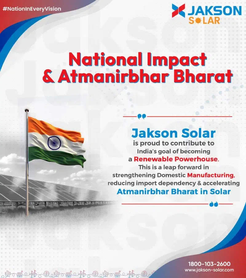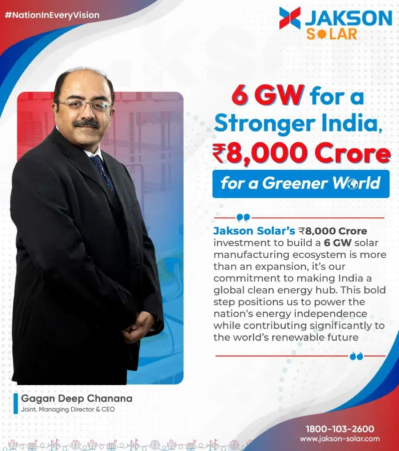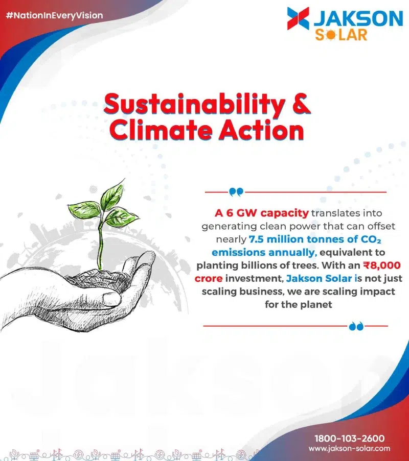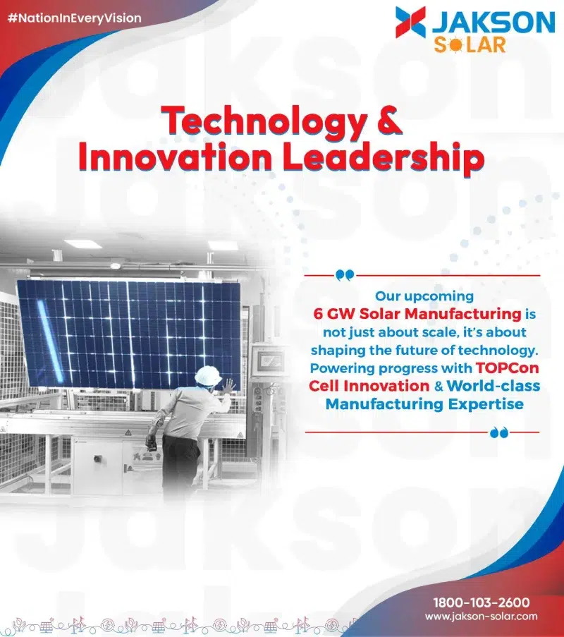 At Jakson Solar, we are building more than capacity, we are creating India’s first truly integrated Wafer, Cell, and Module manufacturing ecosystem. With innovation at the core, we are driving clean energy adoption, generating new jobs, and strengthening self-reliance. Together, we power India’s journey towards energy independence and Sustainable growth.