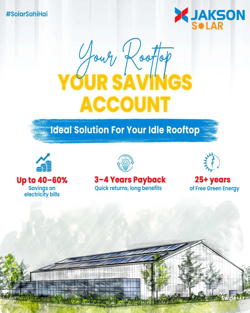 Your rooftop is more valuable than you think-it’s a Goldmine waiting to generate power, profits, and long-term business savings. With rooftop solar, you can convert idle space into a revenue-generating energy asset, reduce electricity costs by 40–60%, and enjoy a quick payback in just 3–4 years, along with 25+ years of clean energy generation. It’s a smart, future-ready investment that offers energy independence, low maintenance, and high reliability. Let’s unlock your rooftop’s true potential today